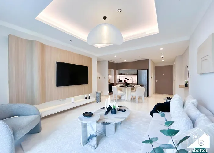 Elegant 1B By The Beach & Iconic Views apartment offers self-catering amenities, such as an equipped kitchenette, and a dining area for guests' convenience. Elegant 1B By The Beach & Iconic Views apartment is also about a 60-minute drive from Business Bay rail station. Take advantage of fitness classes at this apartment to elevate your leisure experience.